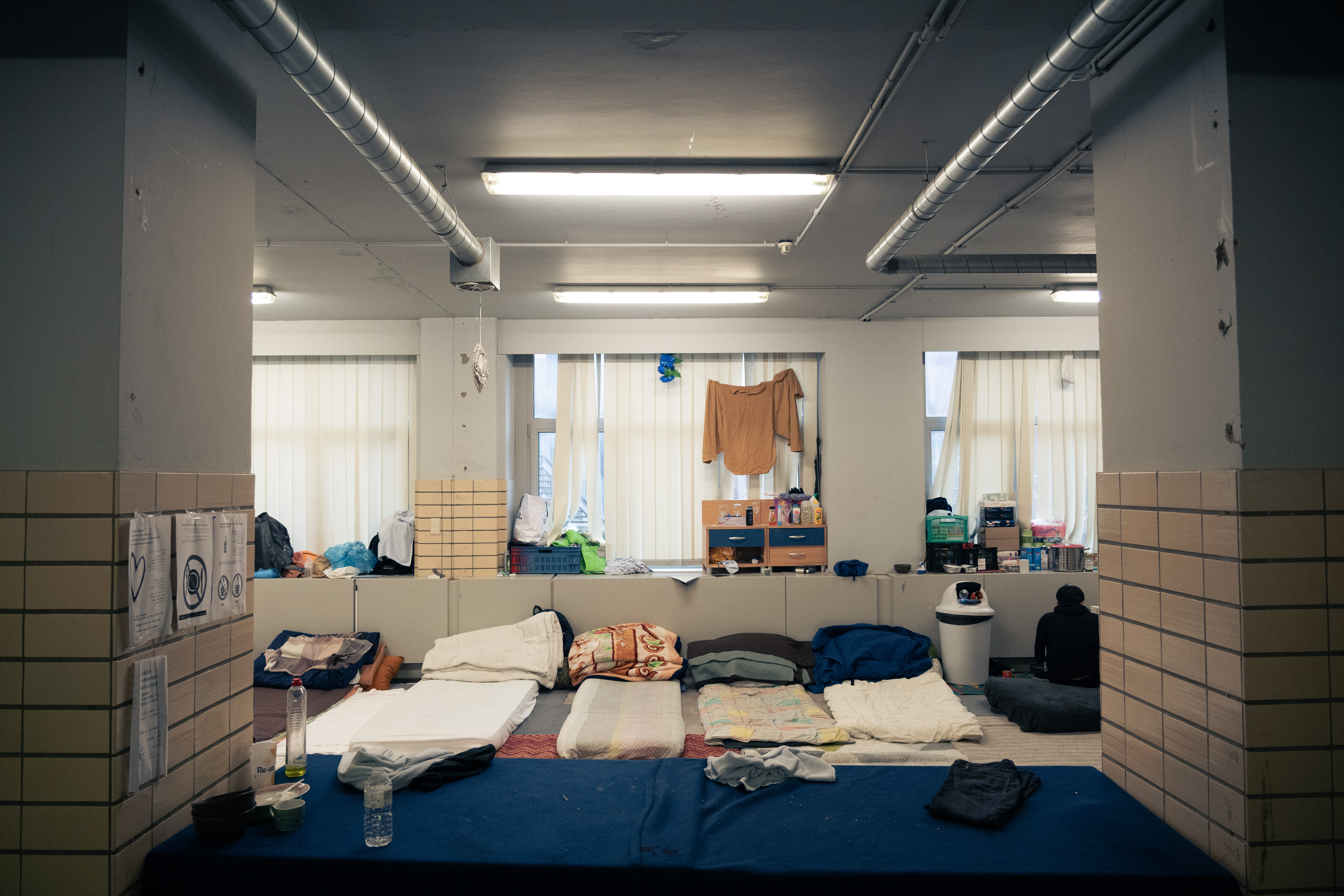 Le collectif « Stop crise de l’accueil », dont ce reportage photographique témoigne, est né pendant l’occupation des palais. Une occupation qui a remis sur le devant politique, l’urgence d’agir directement sur la crise de l’accueil. Le but du collectif était de pallier un état défaillant en ouvrant et occupant des bâtiments vides afin d’y loger des personnes en demande de protection internationale, tout en usant de moyens de pression politiques et médiatiques pour en faire un sujet quotidien.